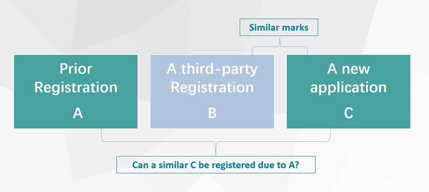 Trademark Continuity Registration addresses whether a trademark registration A can influence the registration of a new, similar trademark C if C is rejected due to a third party’s similar registration B. Specifically, it considers whether registration A can support the registration of C, especially if A has gained reputation through use.